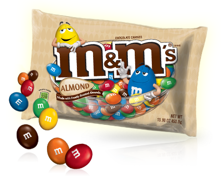Almond M&M's were first produced in 1959 in canada, 1993 in the US and in 2011 in Australia. They were originally only available during Christmas and Easter, but soon enough, they were available all year long. They are similar to Peanut M&M's, but with Almonds. After The 2011-2012 Re-Design, Almond M&M's were only available in larger bags. In Summer 2012, Almond M&M's were available in "Sharing Size" Packs, and still are available today.