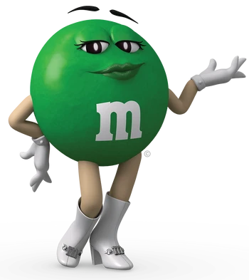 Ms. Green is a spokescandy for multiple M&M's flavors. She is an anthropomorphic M&M created with natural beauty beyond description with a green complexion, as her name implies.